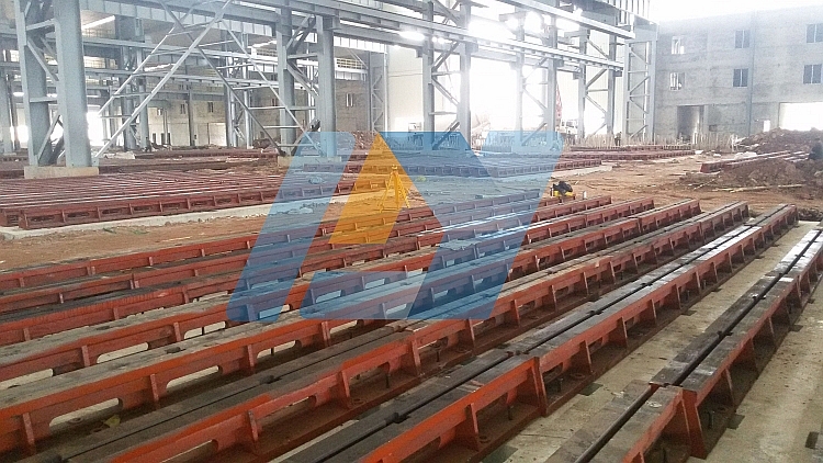 4、將地軌支承點墊好、墊平,包管每個支撐點受力平均,包管整個地軌平穩。