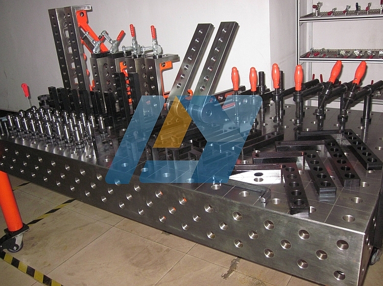 三維柔性工裝平臺是根據機械加工中焊接夾具的原理構思而成,通過平臺基礎班與槽型孔附件,附件與附件相互搭配連接,能夠形成一套焊接組合工裝。